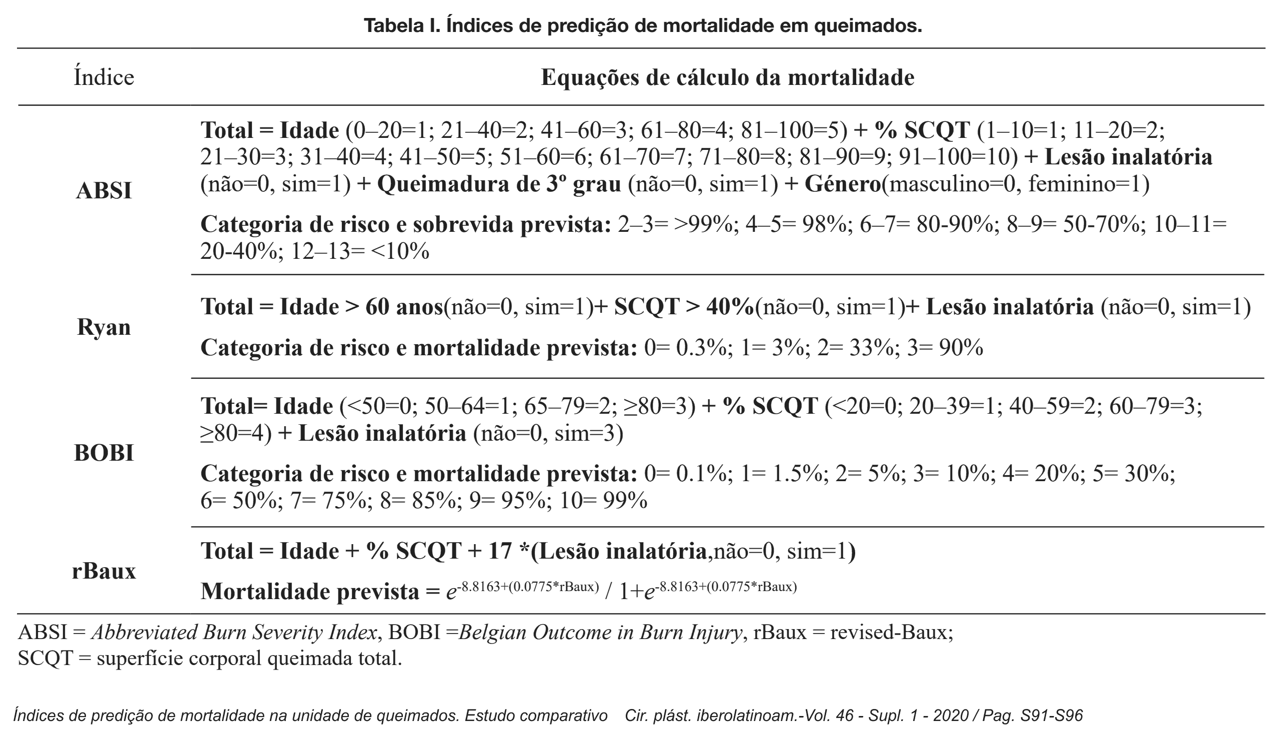 Índices de predição de mortalidade na unidade de queimados. Estudo comparativo